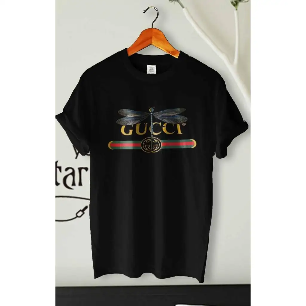 Gucci Logo and Dragonfly Black T shirt gucci dragonfly t shirt
