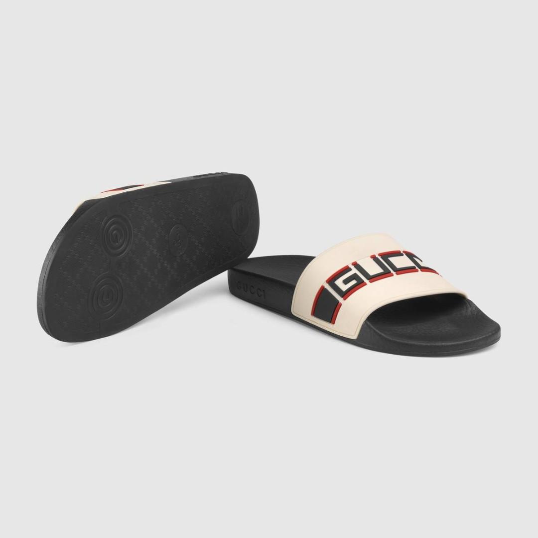 Red \u0026 Black stripe rubber slide sandal gucci slides red and black